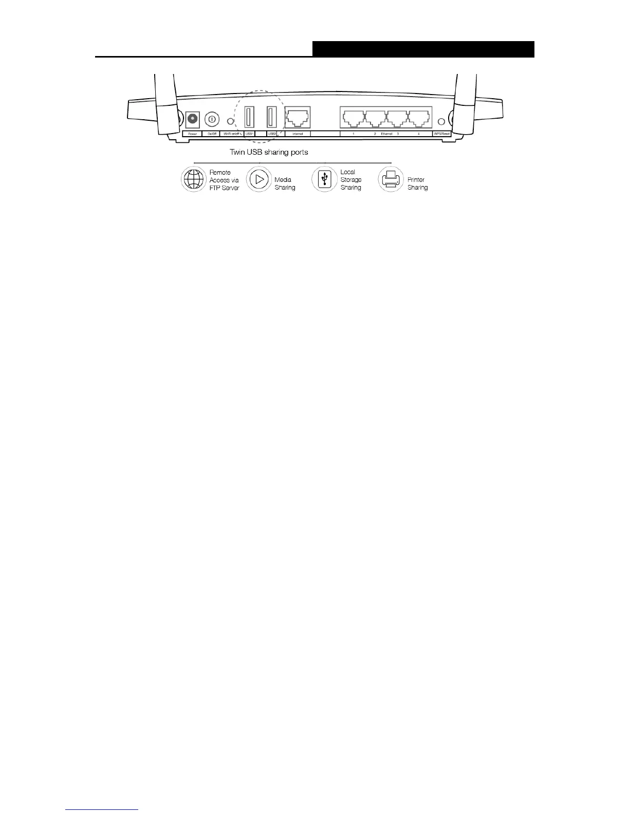 If you want to use the router to share files or printer, plug the USB storage device(s) to the USB