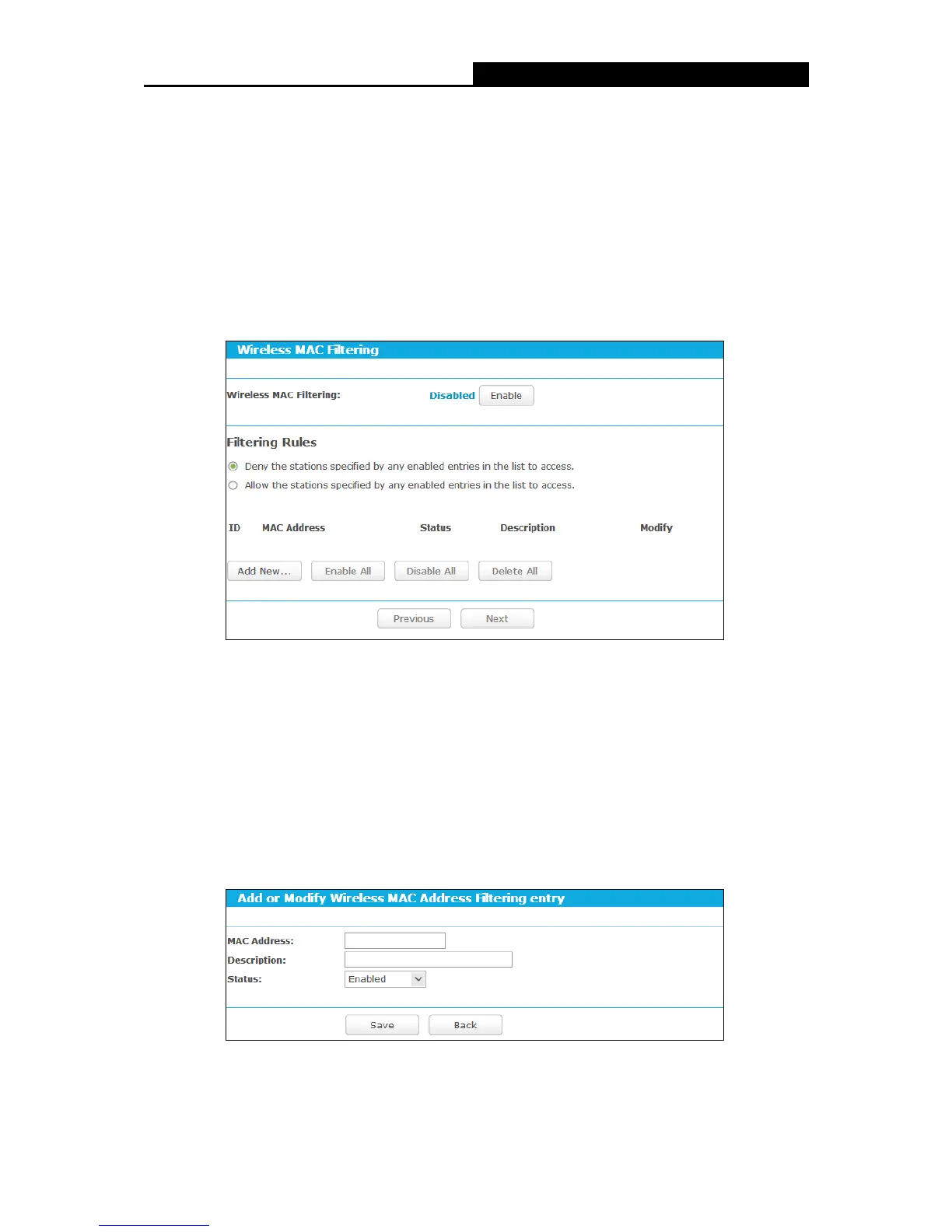 configuring the Wireless MAC Filtering function, shown in Figure 5-34.