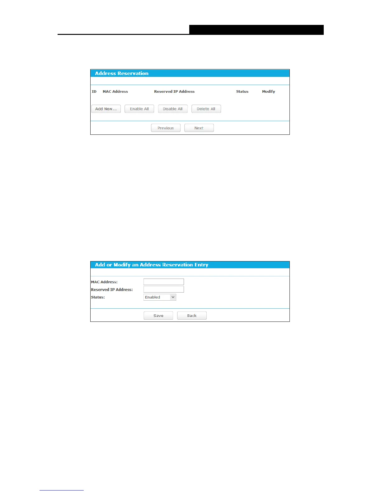 Figure 5-43 Add or Modify an Address Reservation Entry