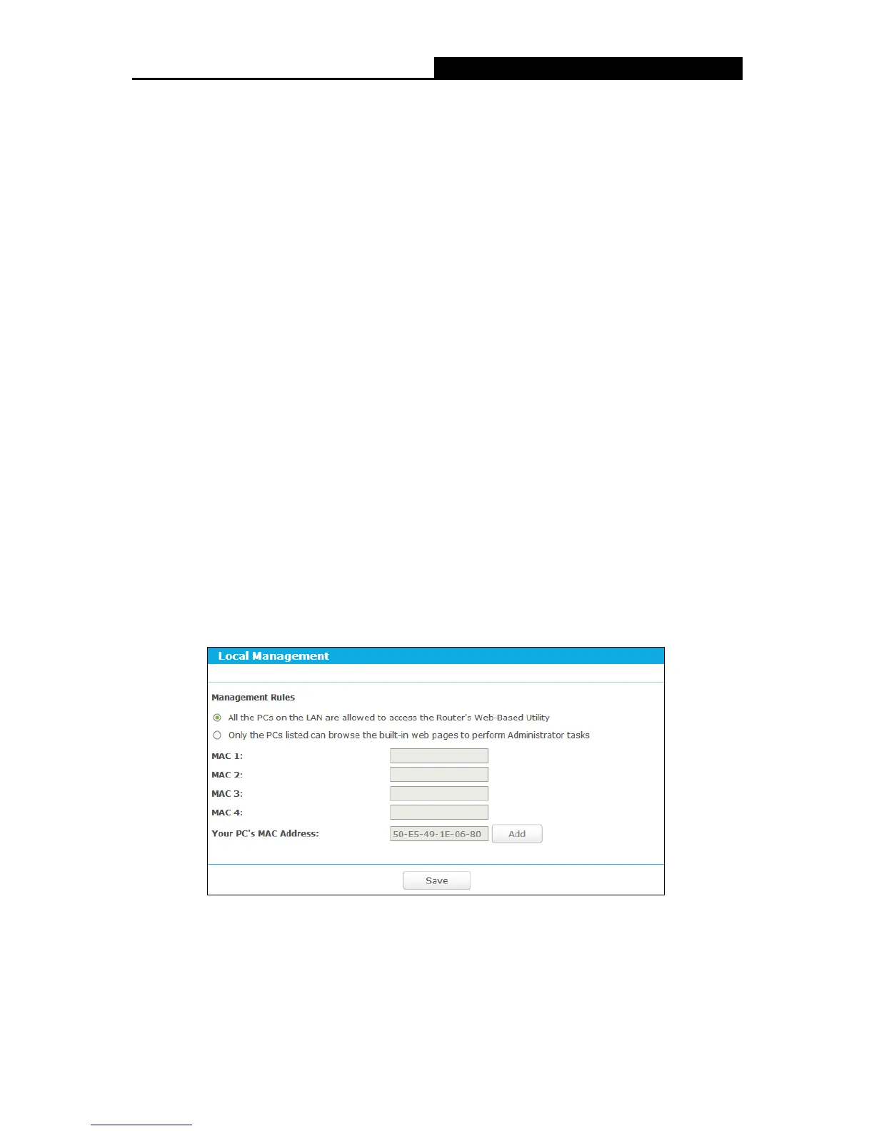 button “Only the PCs listed can browse the built-in web pages to perform Administrator