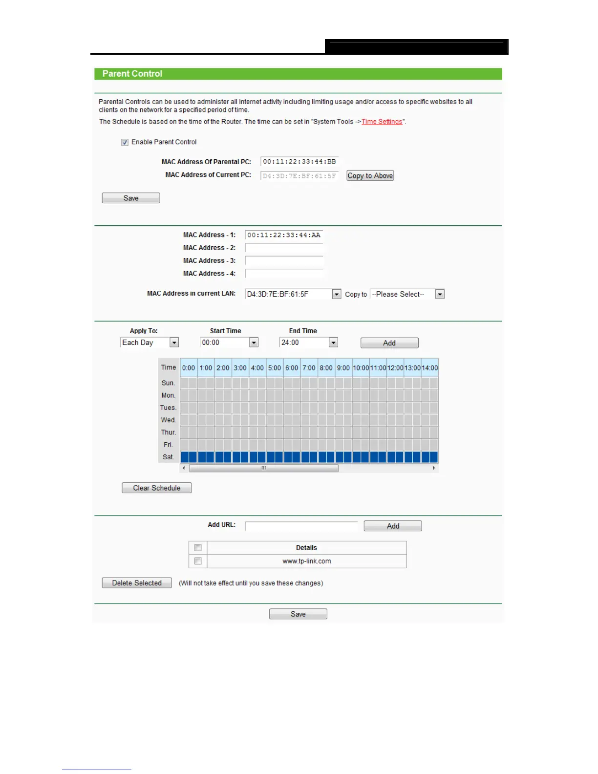 Figure 4-74 Parent Control Settings