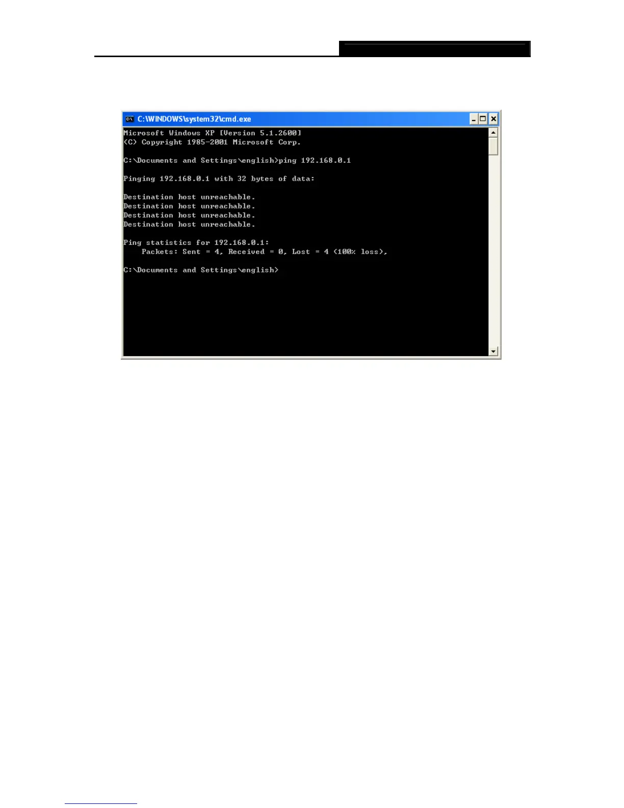 Figure 3-2 Failure result of Ping command