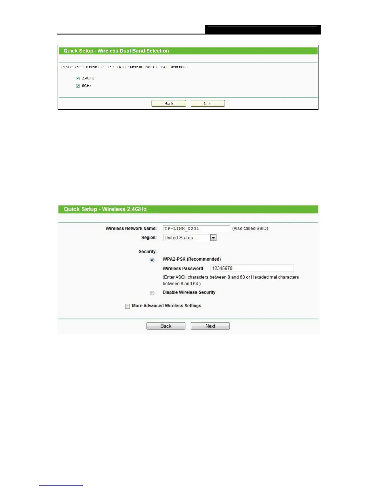 Figure 3-12 Quick Setup – Dual Band Selection