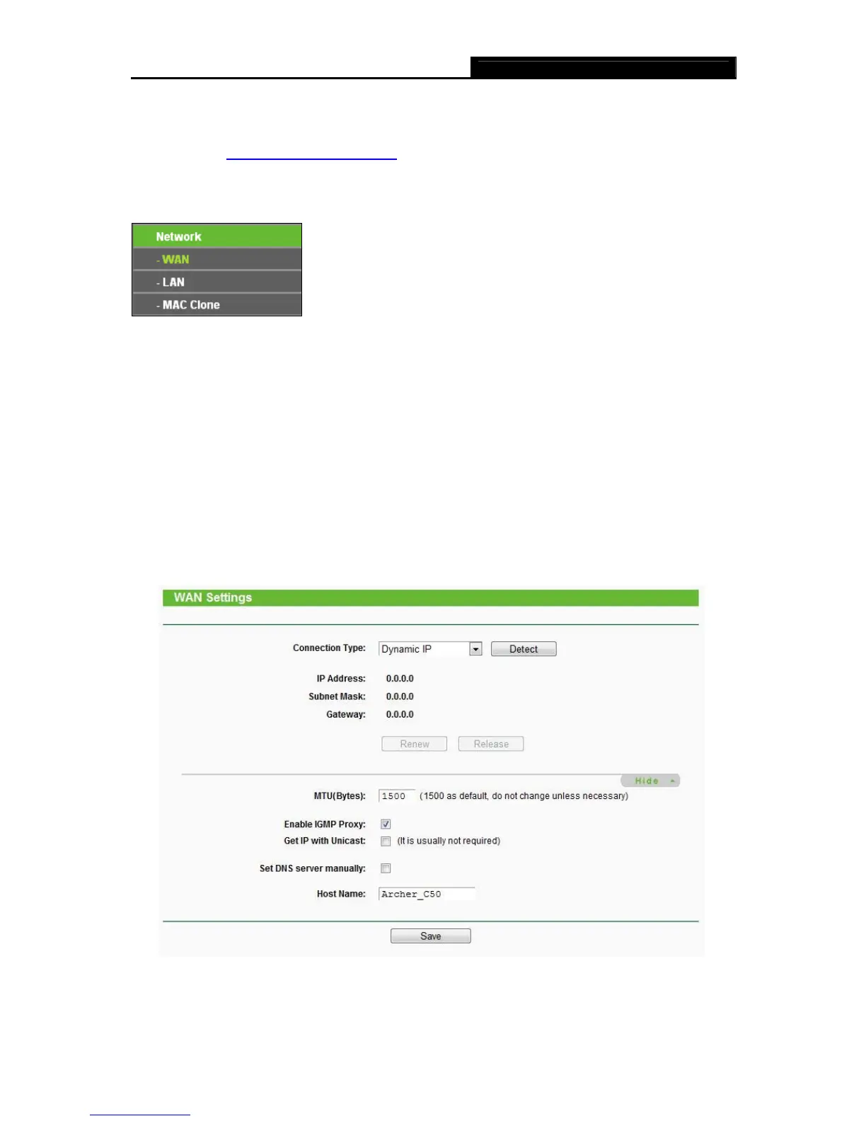 1. If your ISP provides the DHCP service, please choose Dynamic IP type, and the router will