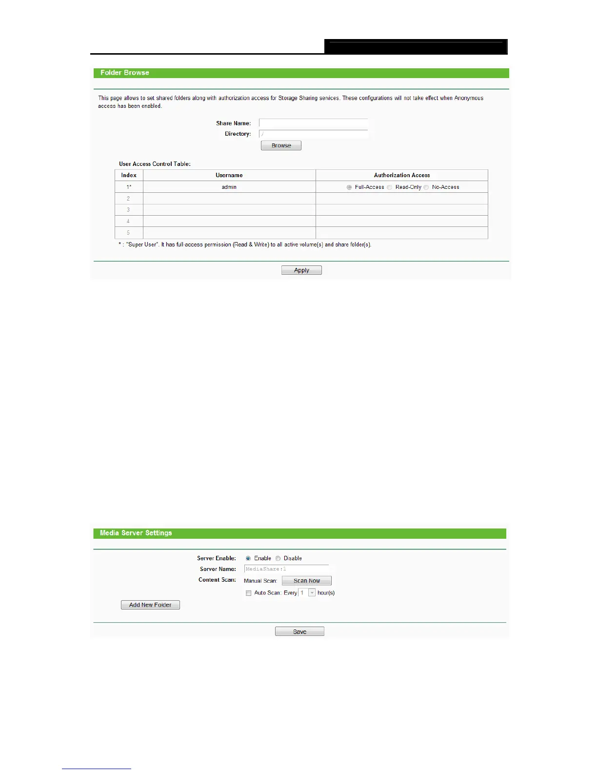Choose menu “USB Settings→Media Server”, you can create media server that allows you to