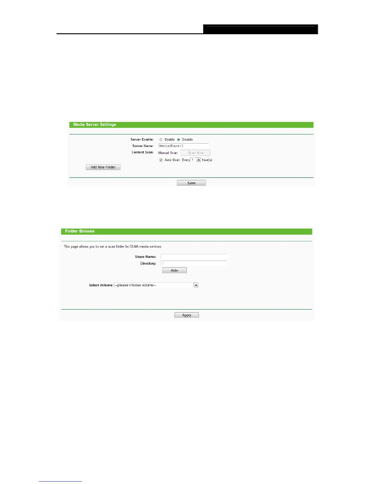 2. Click the Add New Folder button to specify a folder as the search path of media server. The