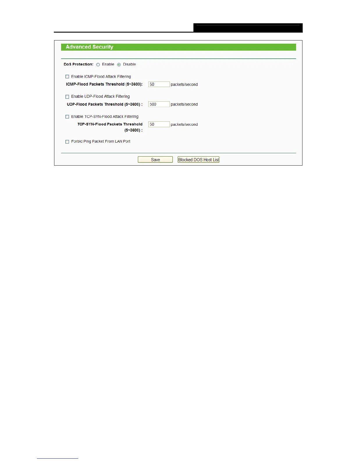 DoS Protection - Denial of Service protection. Check the Enable or Disable button to