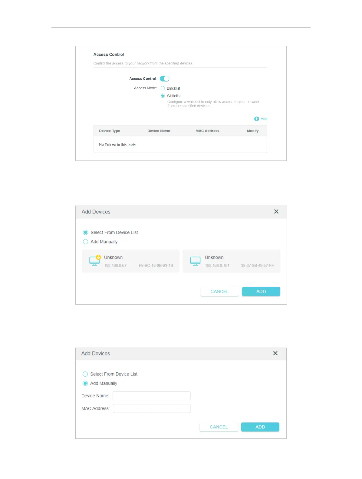 Click Add Manually and enter the Device Name and MAC Address of the device you