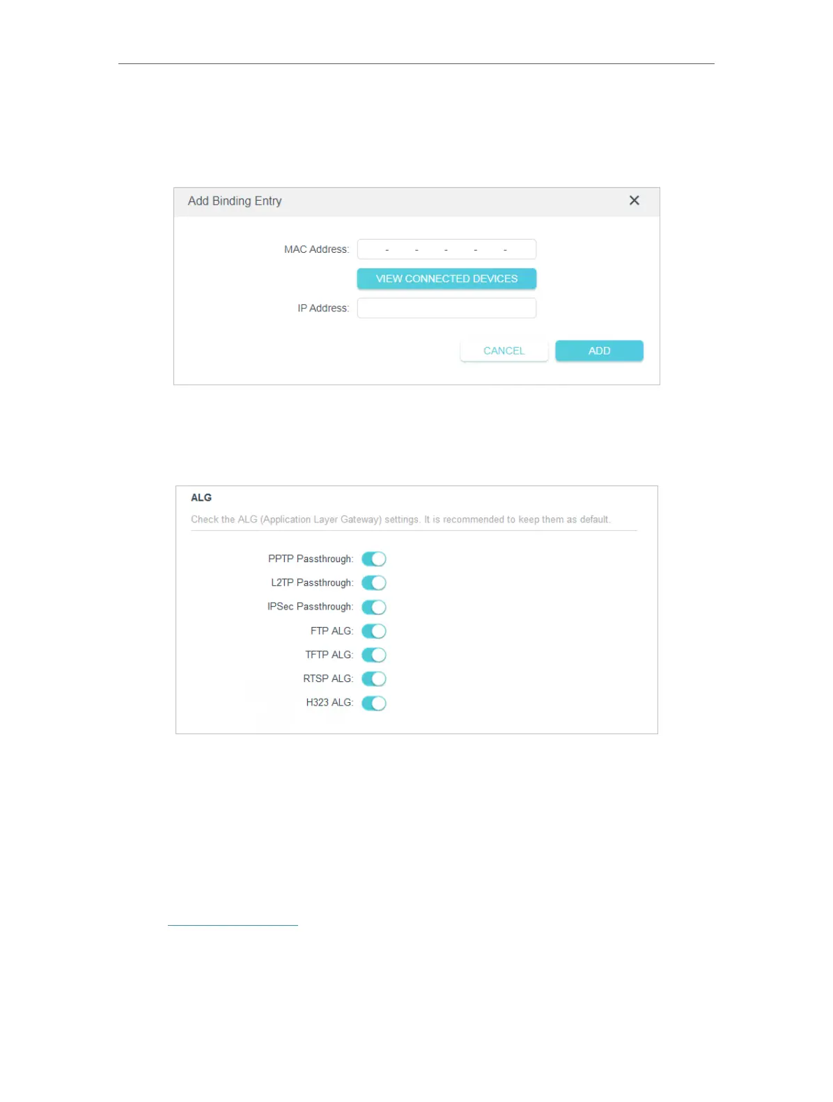 View your ALG (Application Layer Gateway) settings in this page. It is recommended to