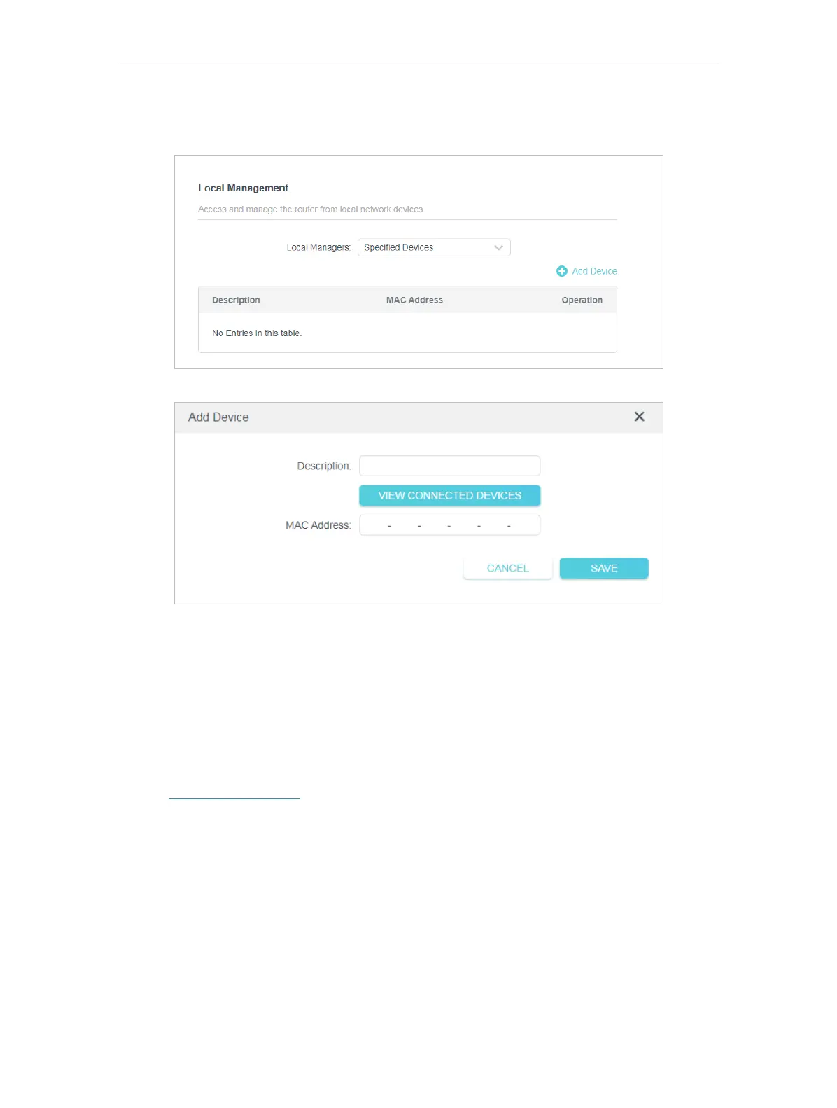 • Allow specific devices to manage the router:
