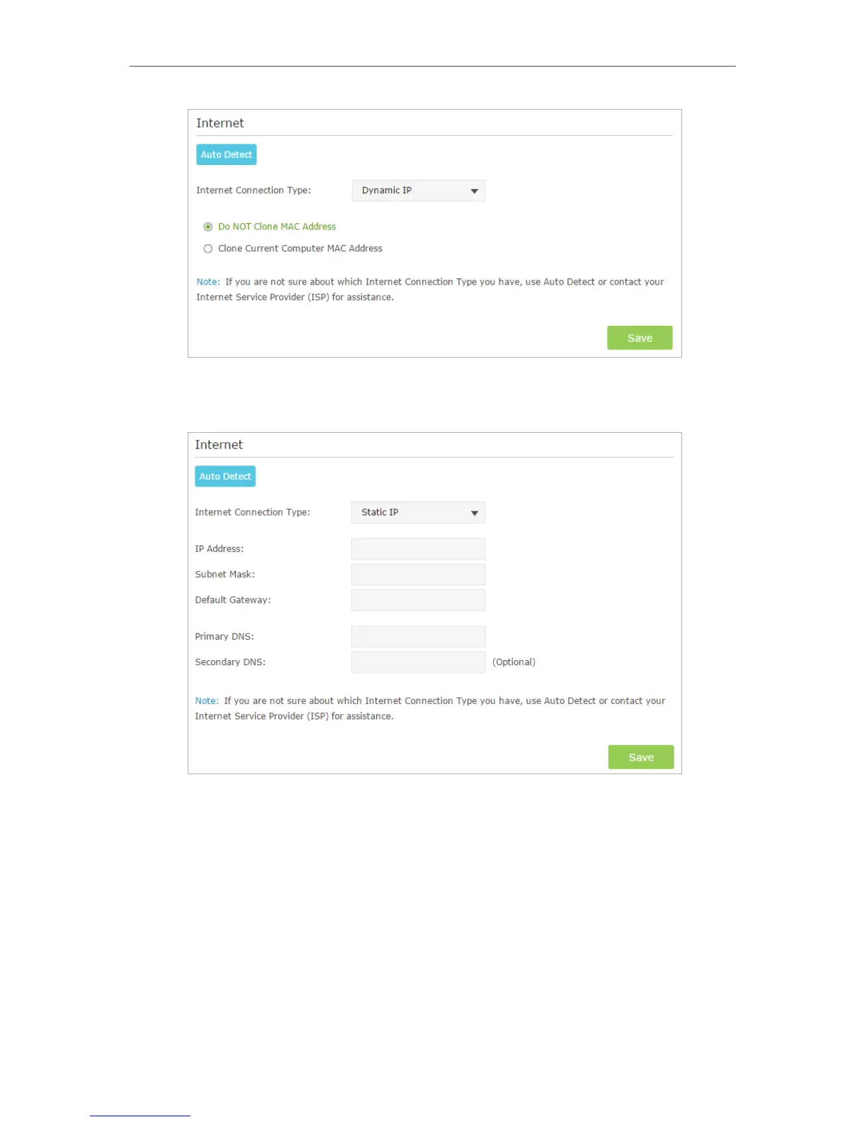 2 ) If you choose Static IP, enter the information provided by your ISP in the