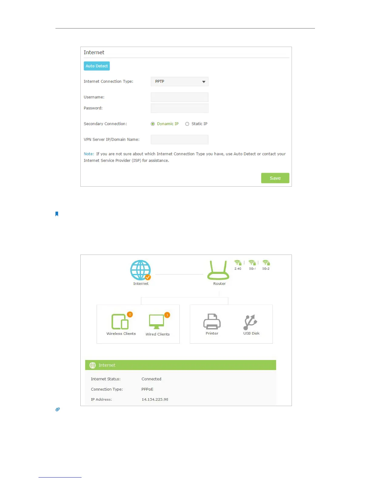 5. Click Save to make the settings take effect. To check your Internet connection, click