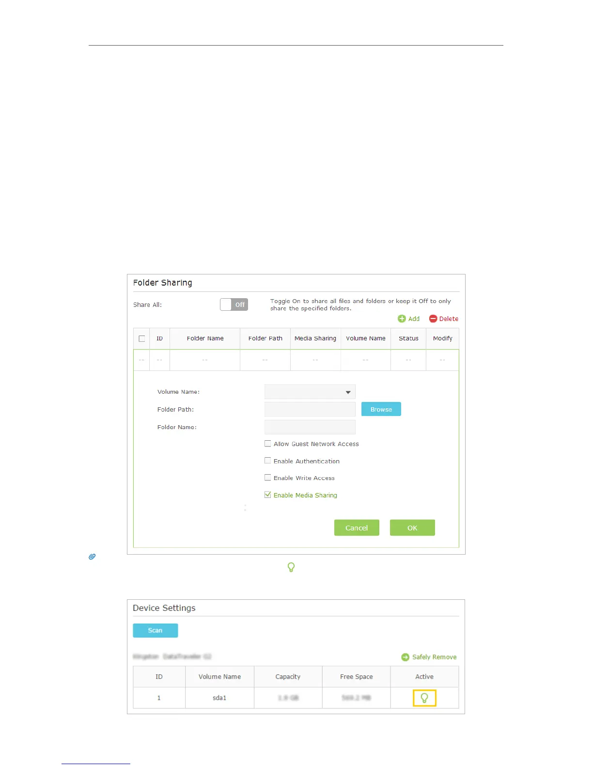 By default, Share All is enabled so all content on the USB disk is shared. If you want to