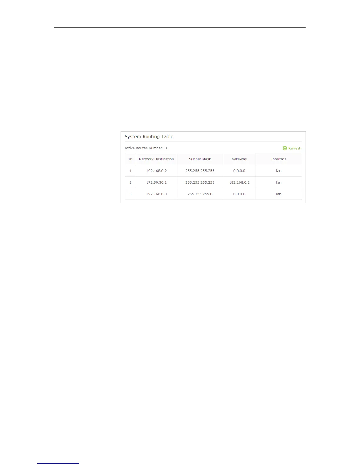 6. Check the System Routing Table below. If you can find the