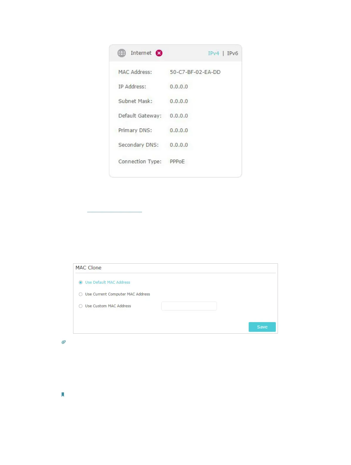 2 ) Go to Advanced > Network > Internet and focus on the MAC Clone section.