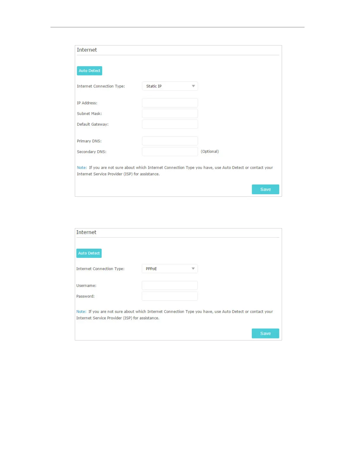 3 ) If you choose PPPoE, enter the Username and Password provided by your ISP.