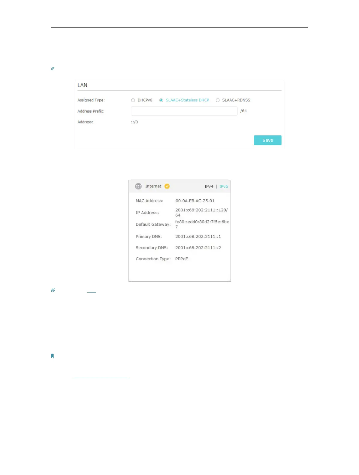 types. Fill in Address Prefix provided by your ISP, and click Save.