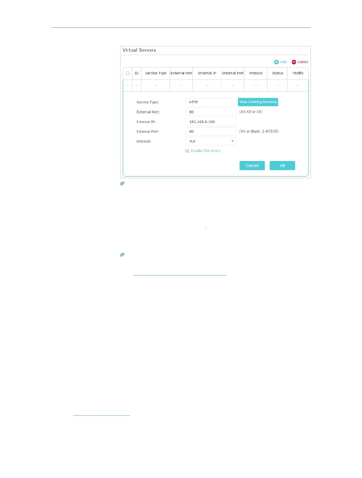 • You can add multiple virtual server rules if you want to provide several services in a