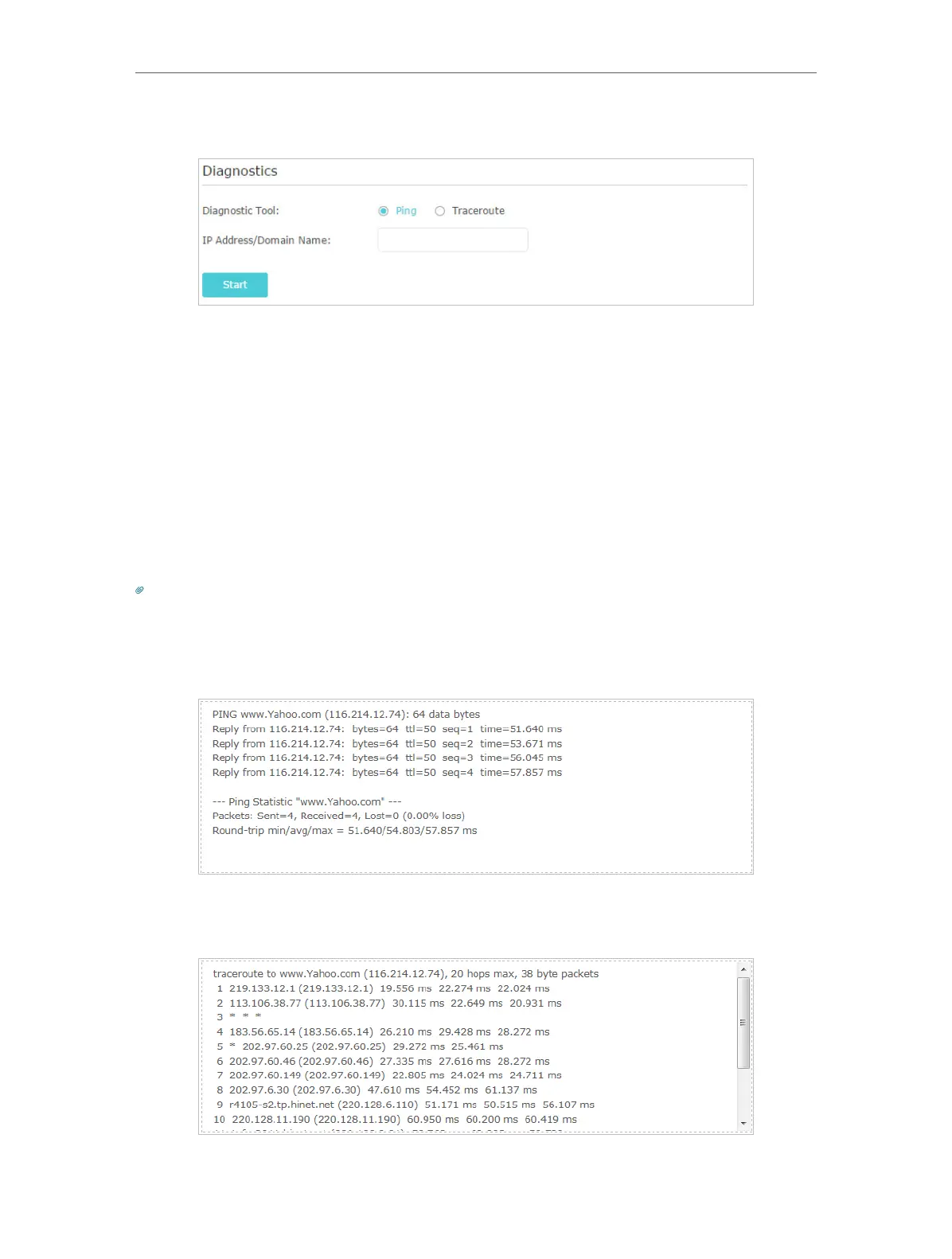 Tips: Click Advanced, you can modify the ping count, ping packet size or the Traceroute Max TTL. It’s recommended