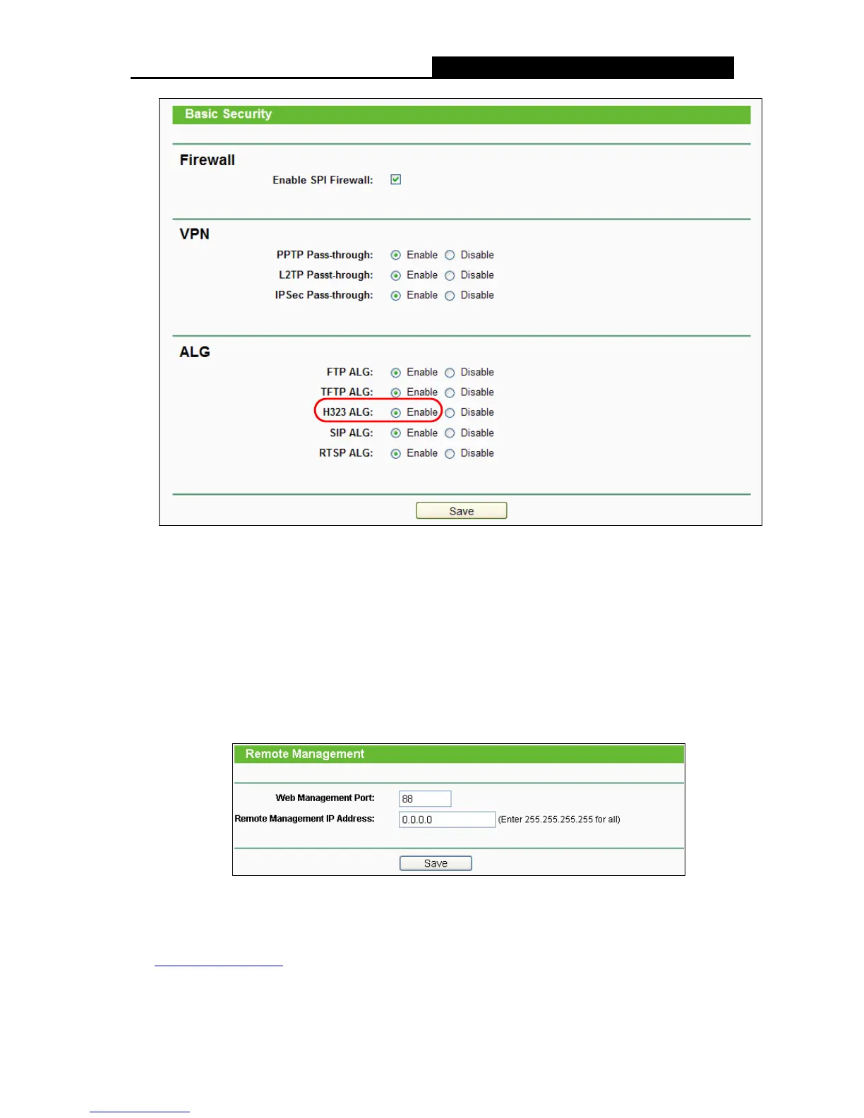 2) To change the WEB management port number: Log in to the router, click the “Security”
