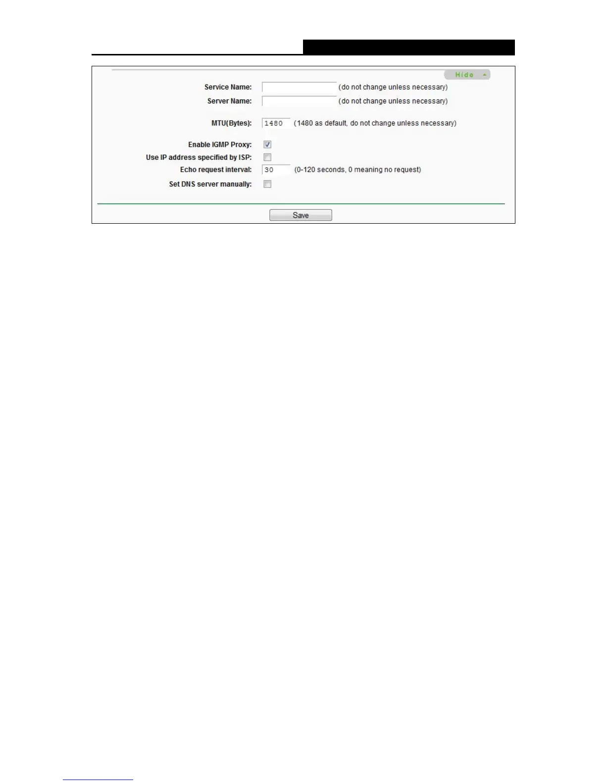 MTU(Bytes) - The default MTU size is “1480” bytes, which is usually fine. It is not