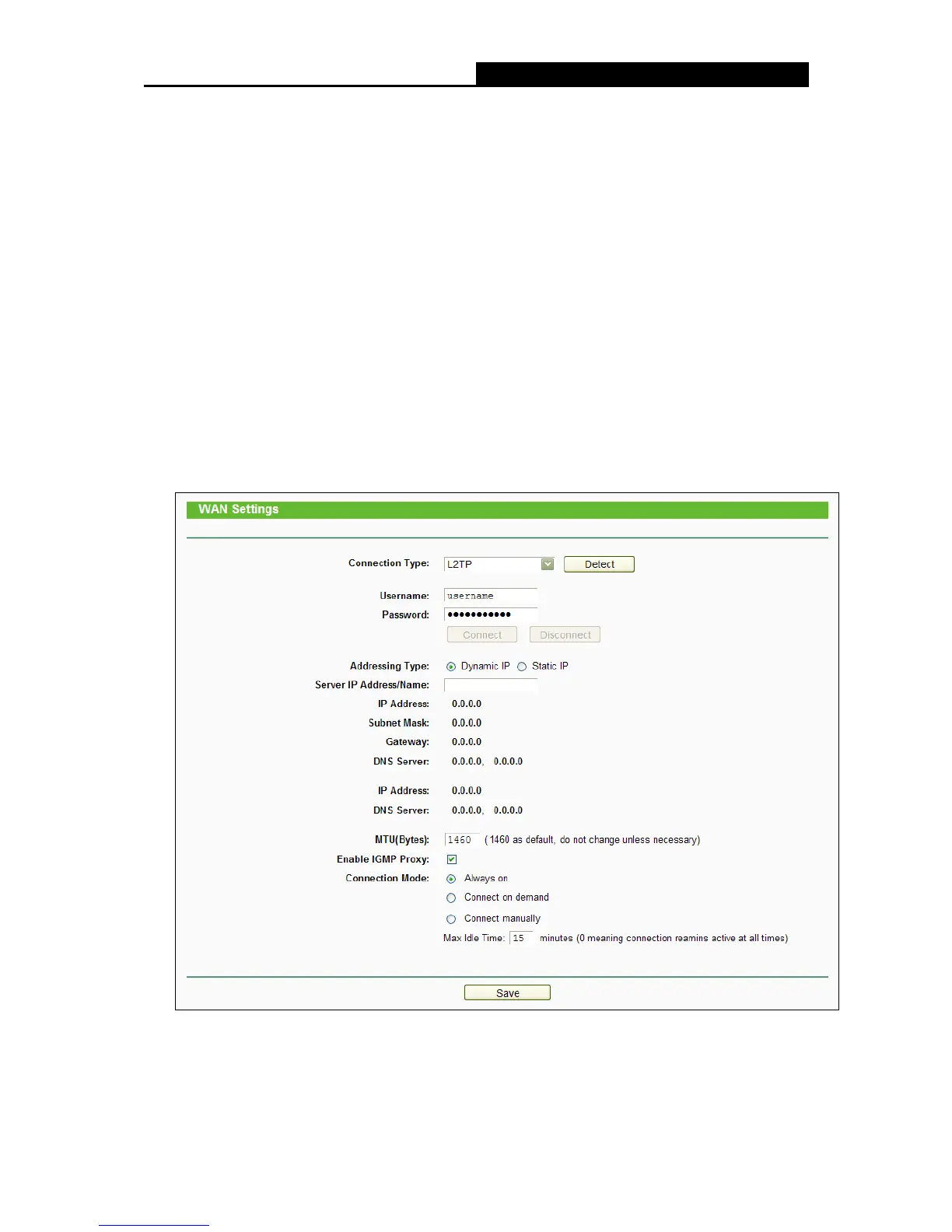 5. If your ISP provides L2TP connection, please select L2TP option. And you should enter the