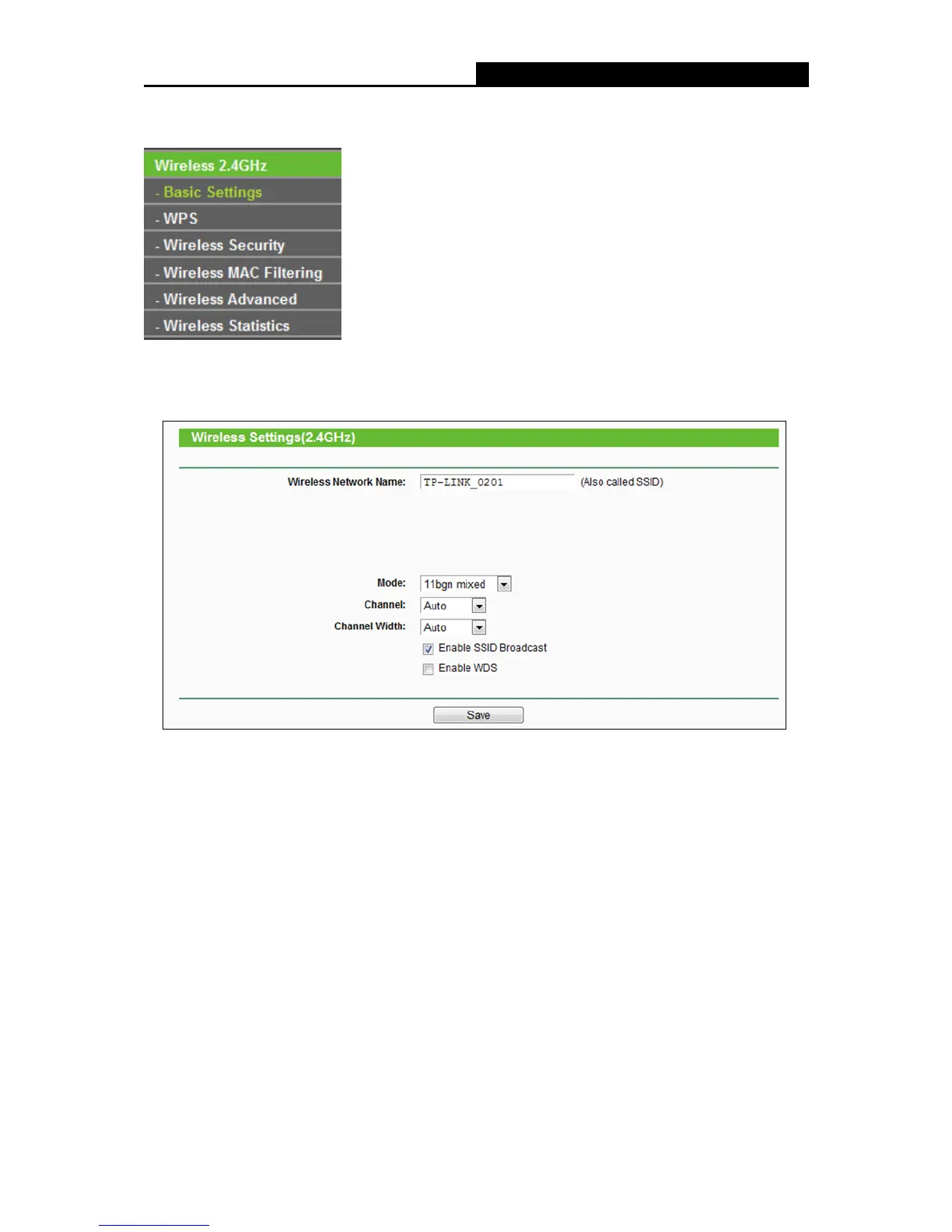 the wireless network of 2.4GHz on this page.