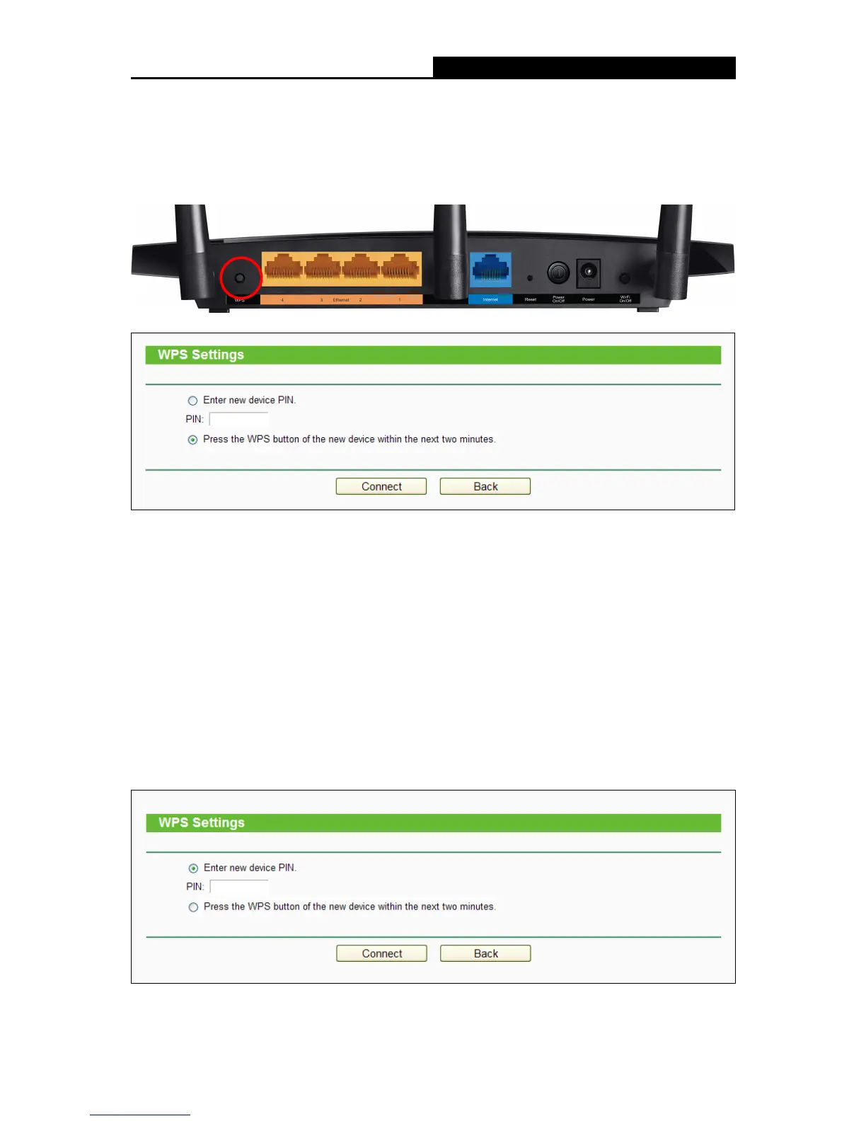 Step 1: Press the WPS button on the back panel of the router, as shown in the following figure.
