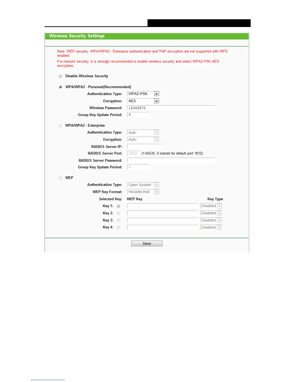 Disable Wireless Security - If you do not want to use wireless security, check this radio
