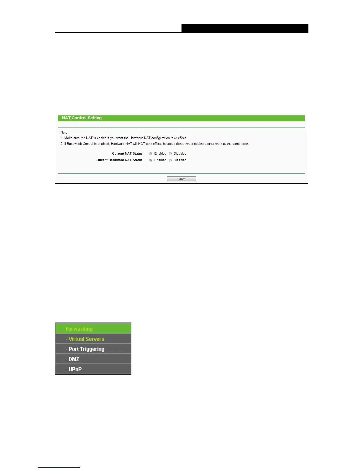 Enable NAT Control - If enabled, the NAT function and the Forwarding configuration will