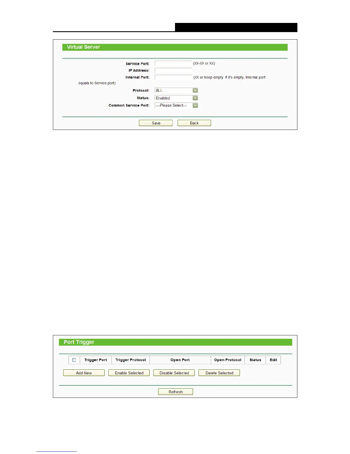 Port Triggering”, you can view and add port triggering entry on this