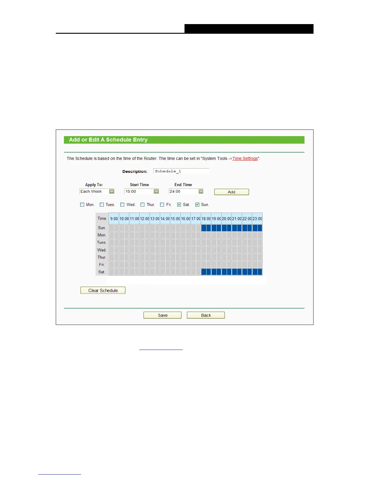 3. In Day list, select Each Week from the drop-down list and click Sat and Sun.