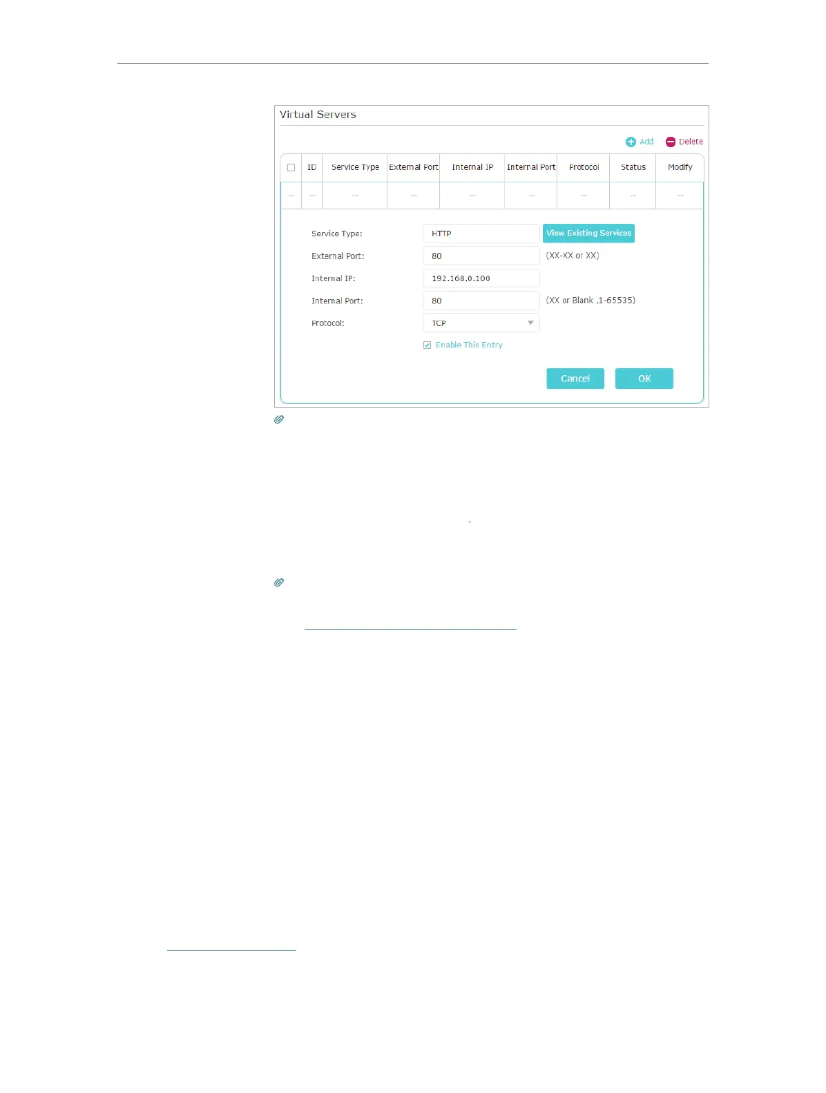 • You can add multiple virtual server rules if you want to provide several services in a