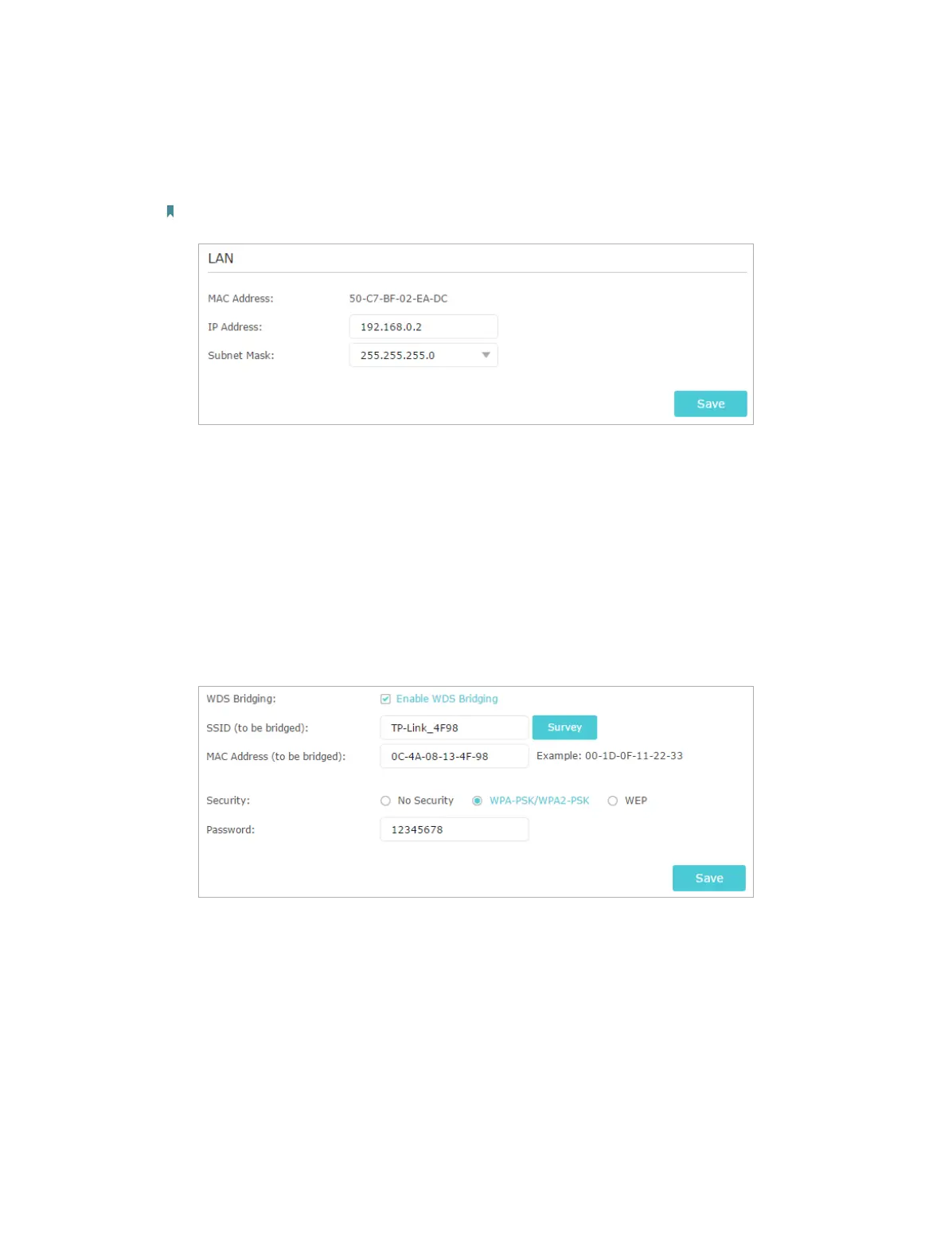 Note: Log in to the web management page again if the IP address of the router is altered.