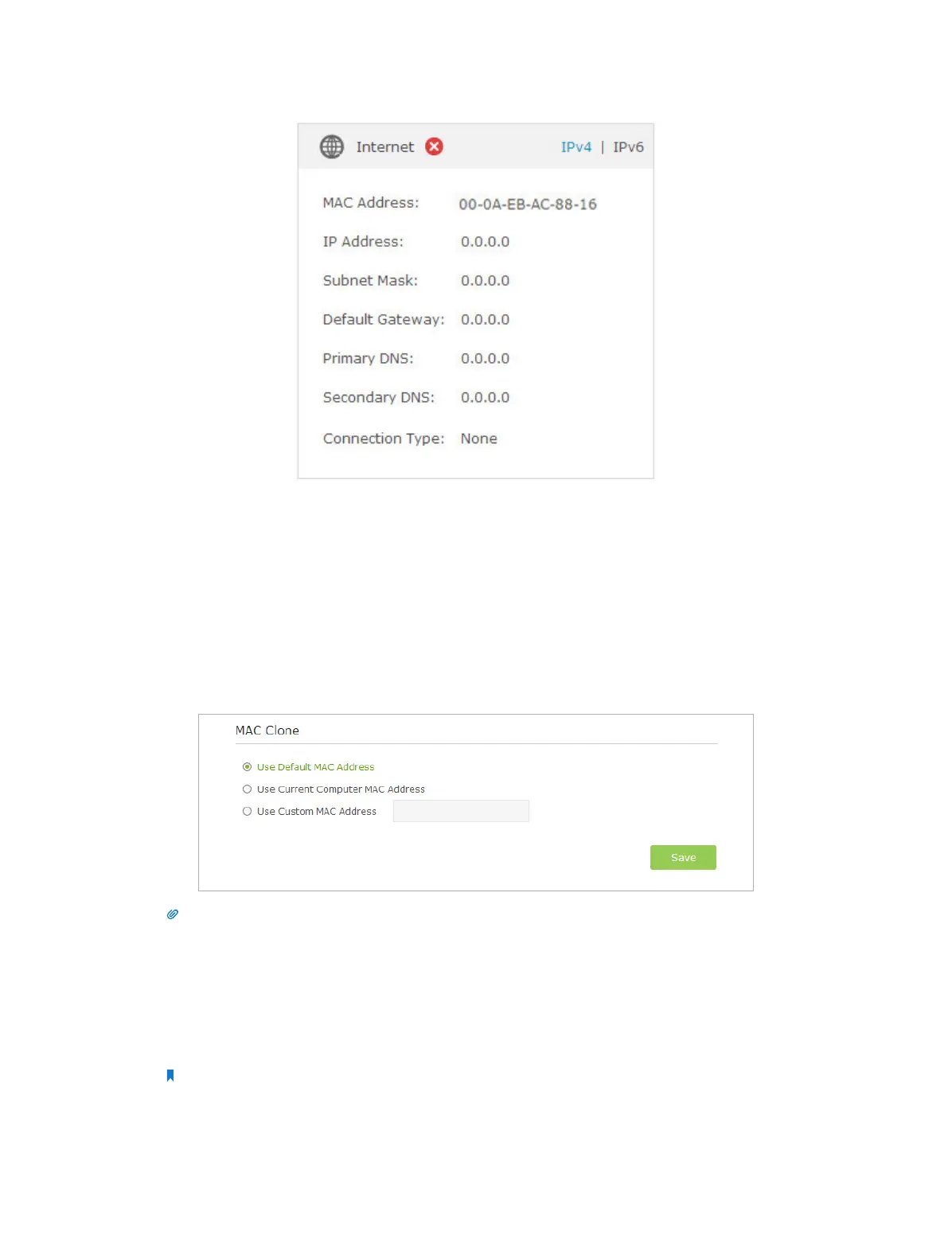 2 ) Go to Advanced > Network > Internet and focus on the MAC Clone section.