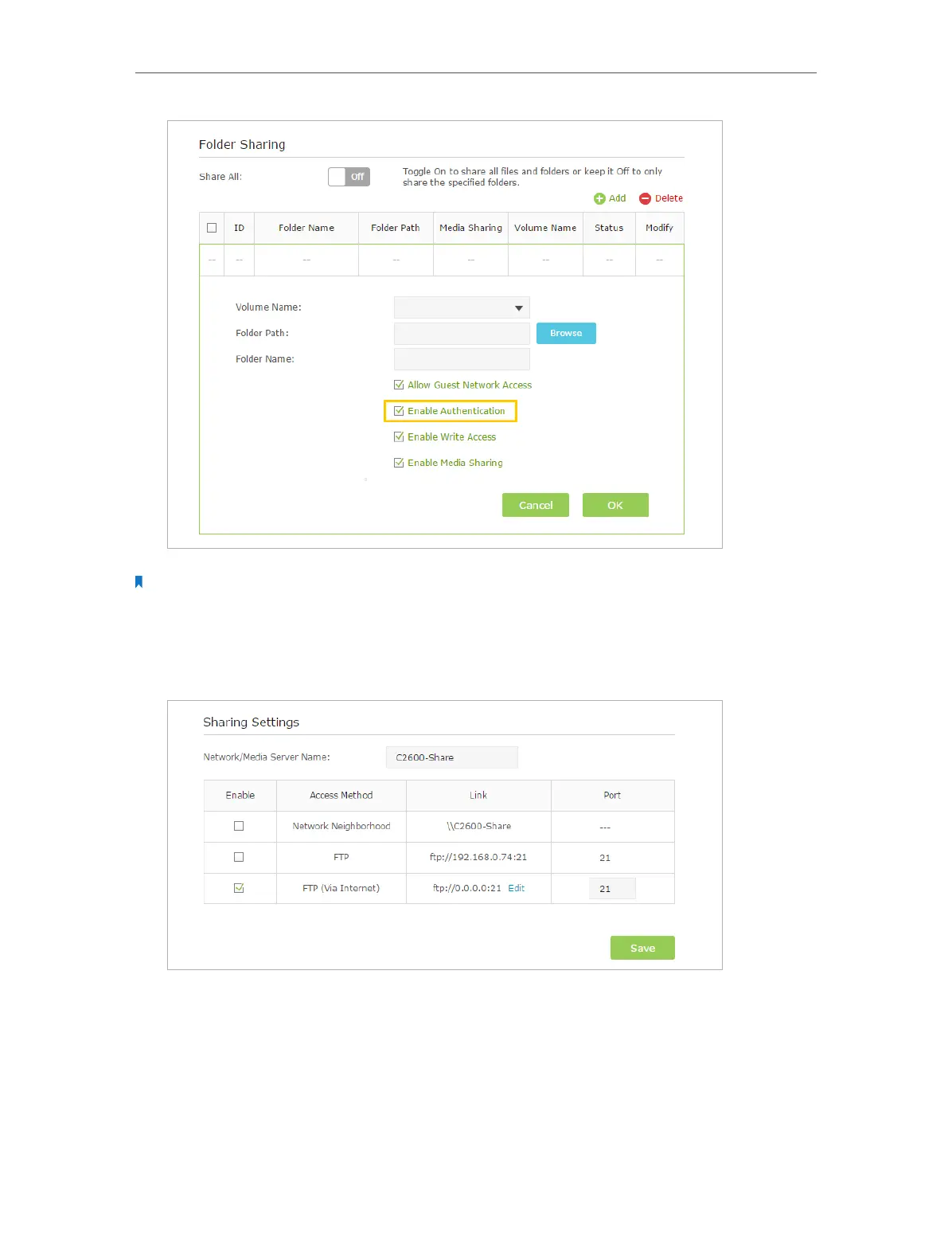 Select the check box to enable FTP(via Internet), then click Save.