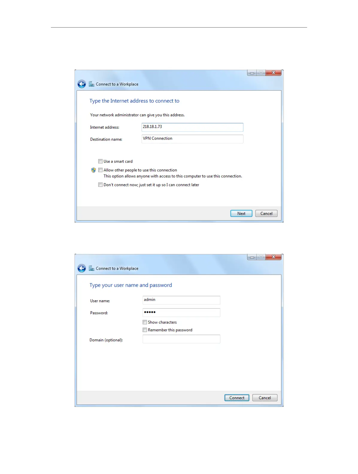 6. Enter the User name and Password, its the username and password you have set on