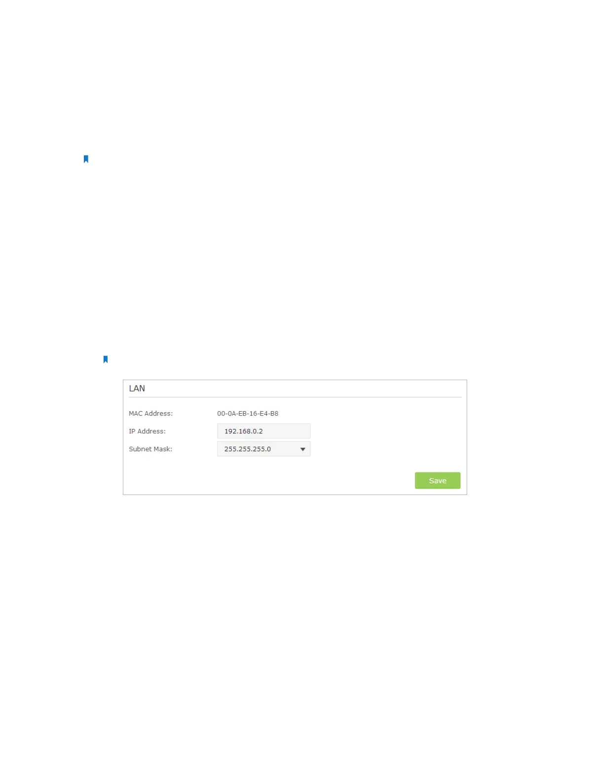 1 ) Go to Advanced > Network > LAN, configure the IP address of the extended