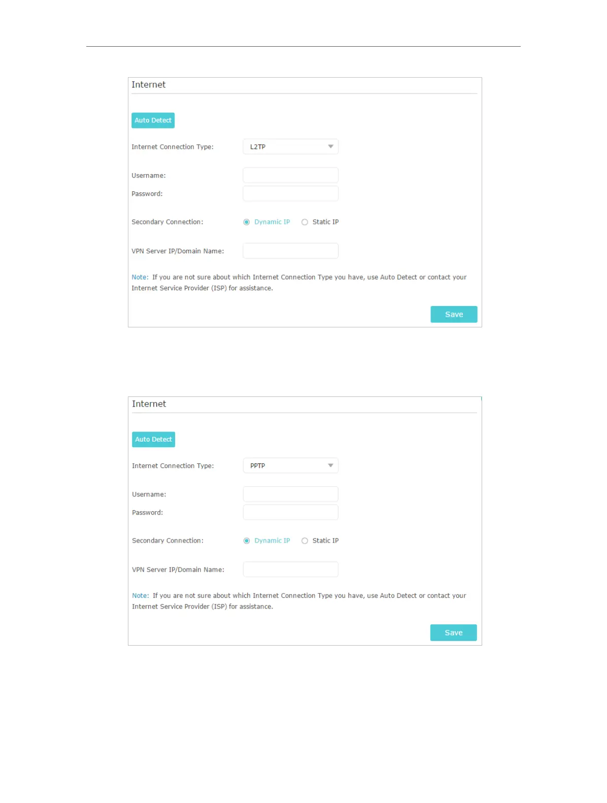 5 ) If you choose PPTP, enter the username and password, and choose the Secondary