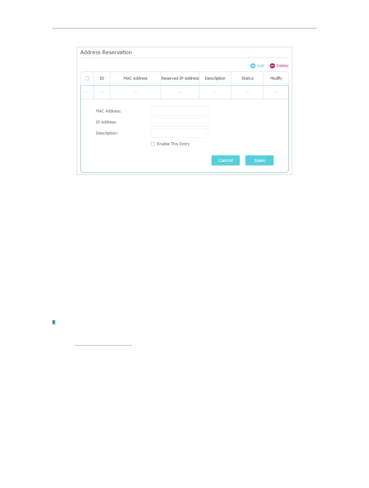 3. Enter the IP address to reserve for the client device.