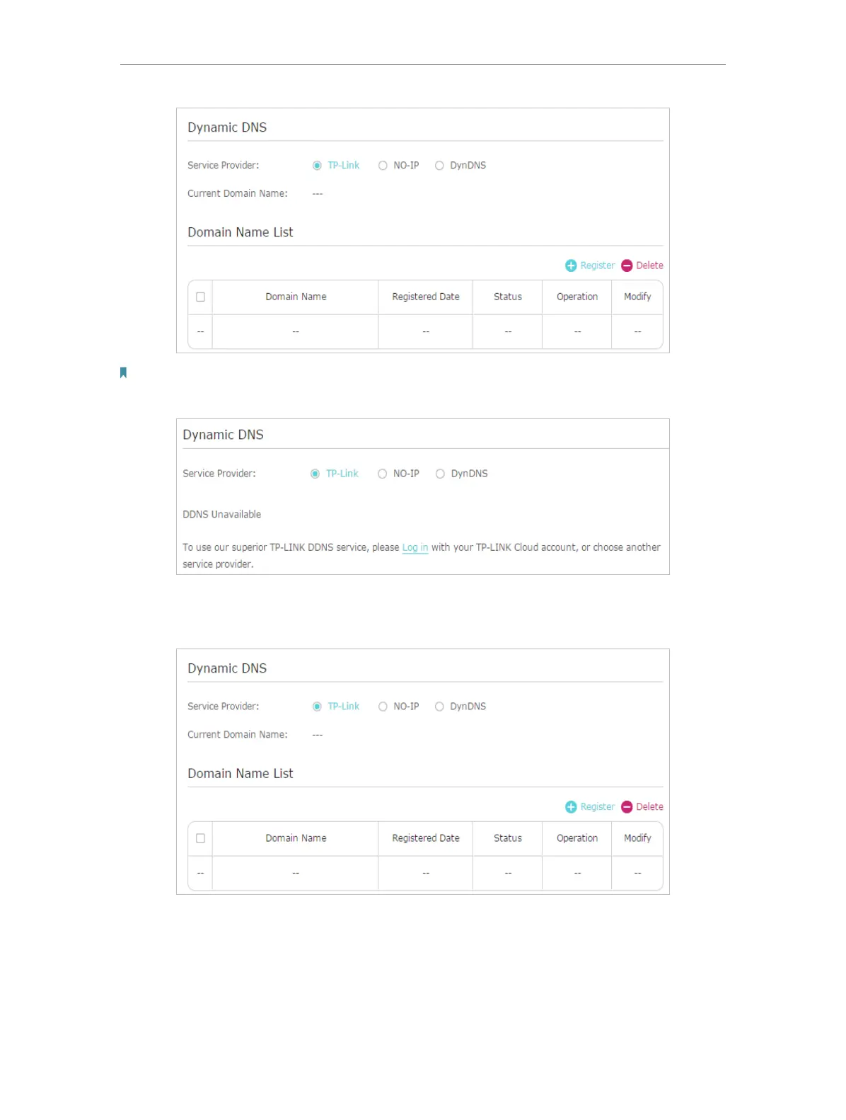 4. Click Register in the Domain Name List if you have selected TP-Link, and enter the