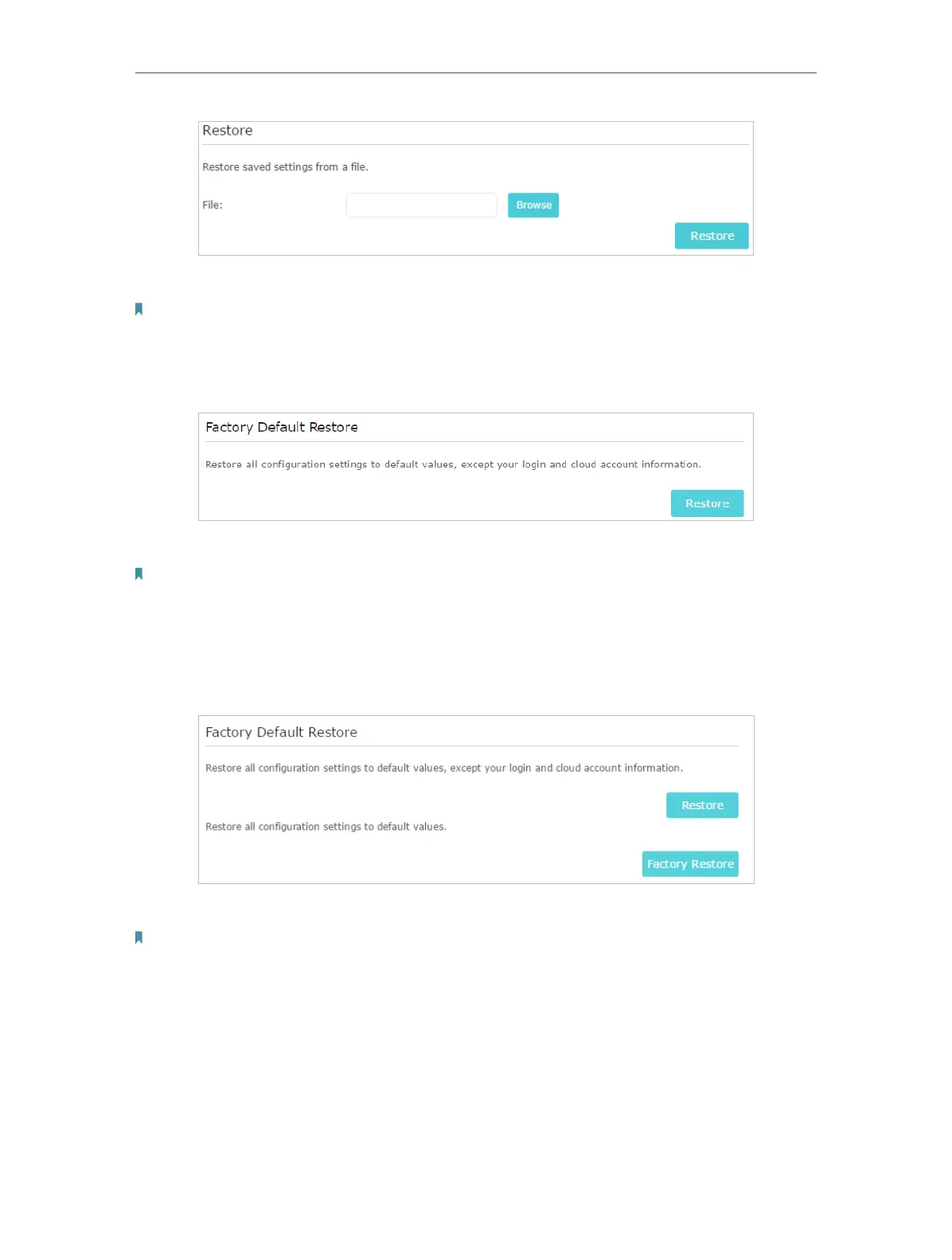 1. Click Restore under the Factory Default Restore session.