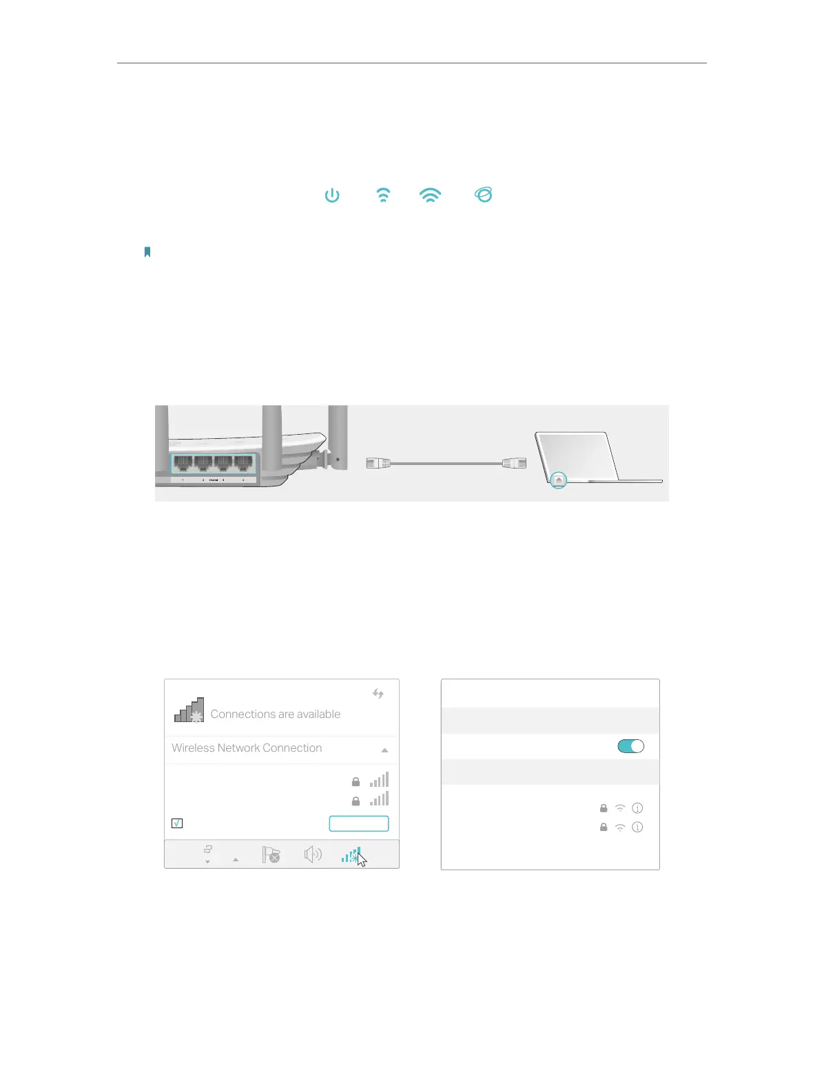 If the 2.4G LED and 5G LED are off, press and hold the WPS/Wi-Fi On/Off button on the back panel for about 5