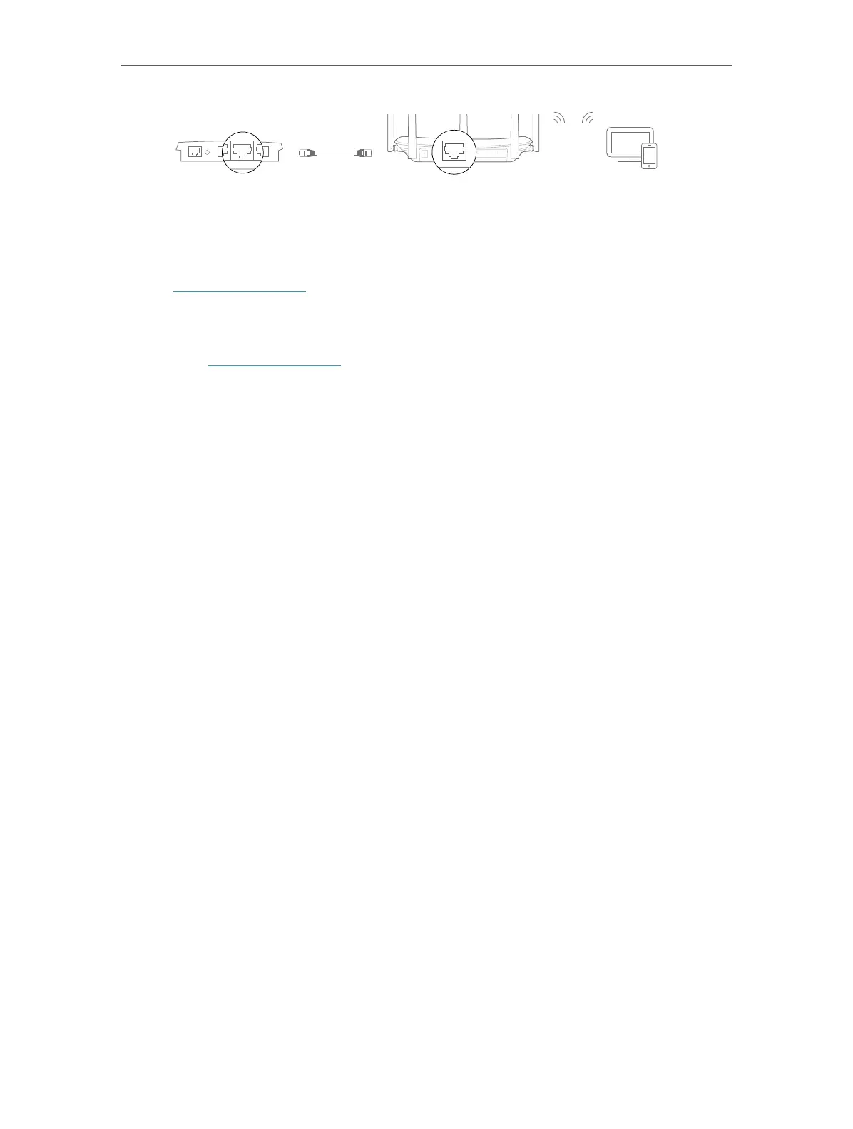1. Connect the router’s Internet port to the existing router’s Ethernet port via an