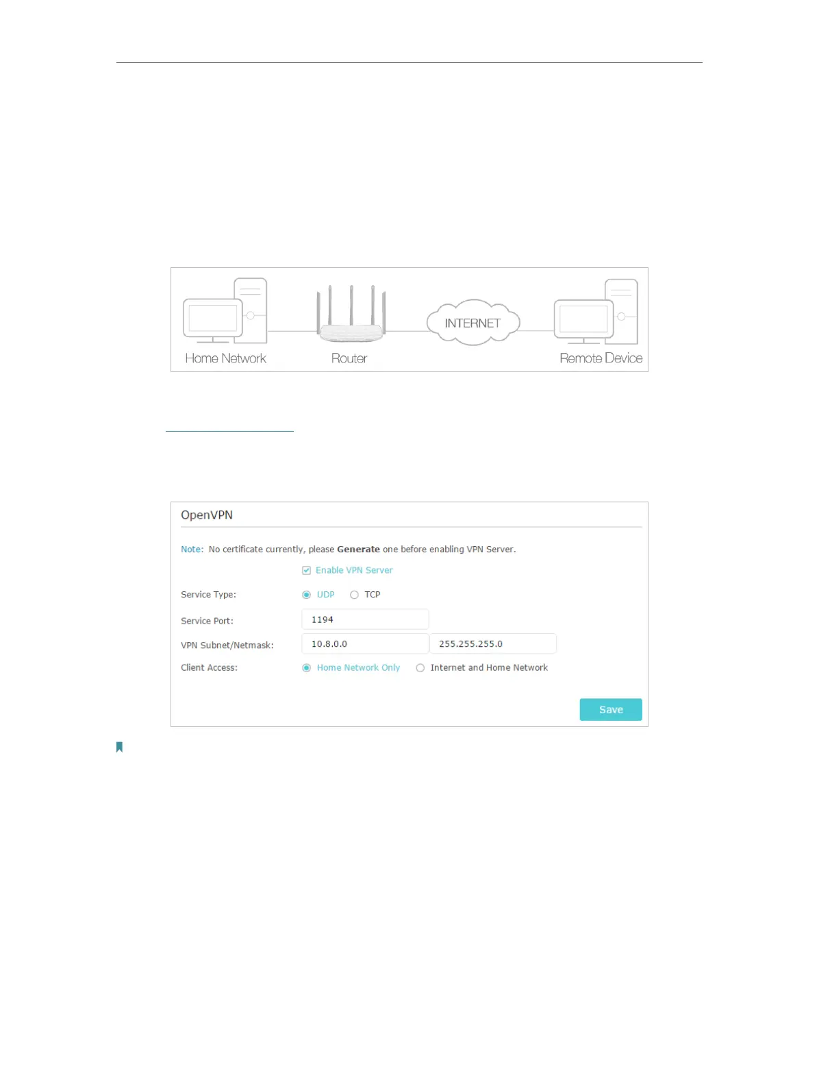 • The first time you configure the OpenVPN Server, you may need to Generate a certificate before you enable the VPN