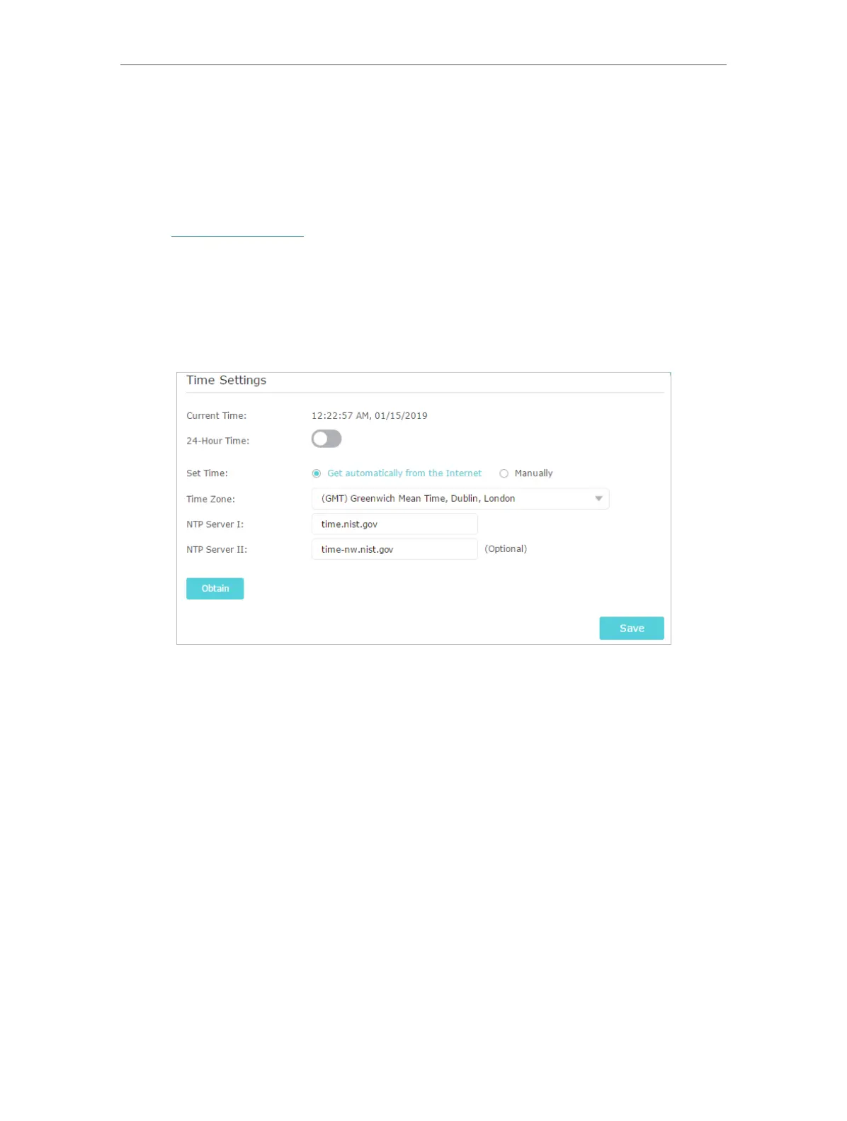 3. In the NTP Server I fileld, enter the IP address or domain name of your desired NTP