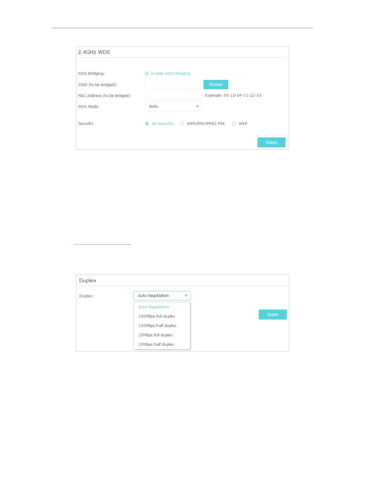 3. Select the duplex type from the drop-down list and click Save.