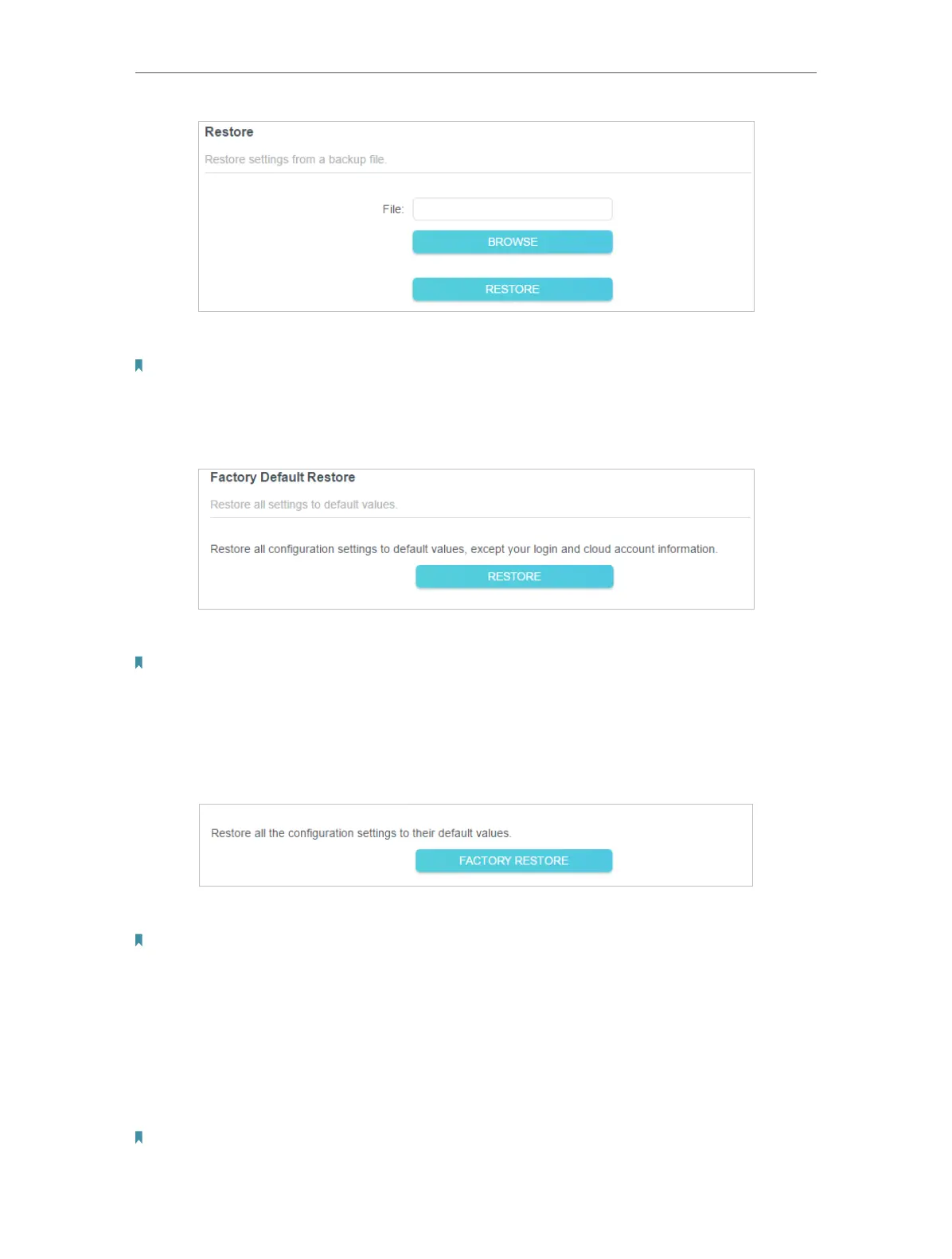 1. In the Factory Default Restore section, click RESTORE.
