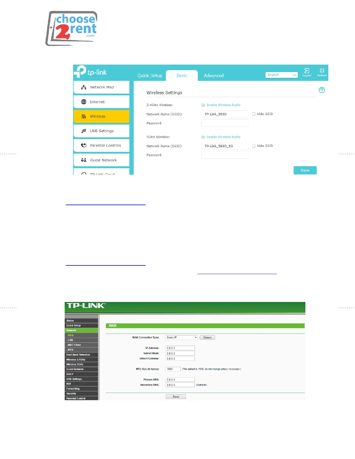 2. (optional) Connect iPad to WiFi SSID www.choose2rent.com