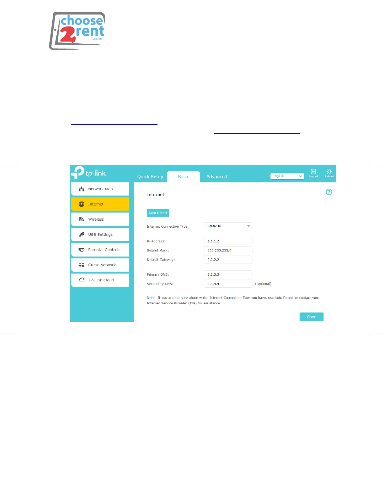 7. Enter the values provided by your Internet Service provider
